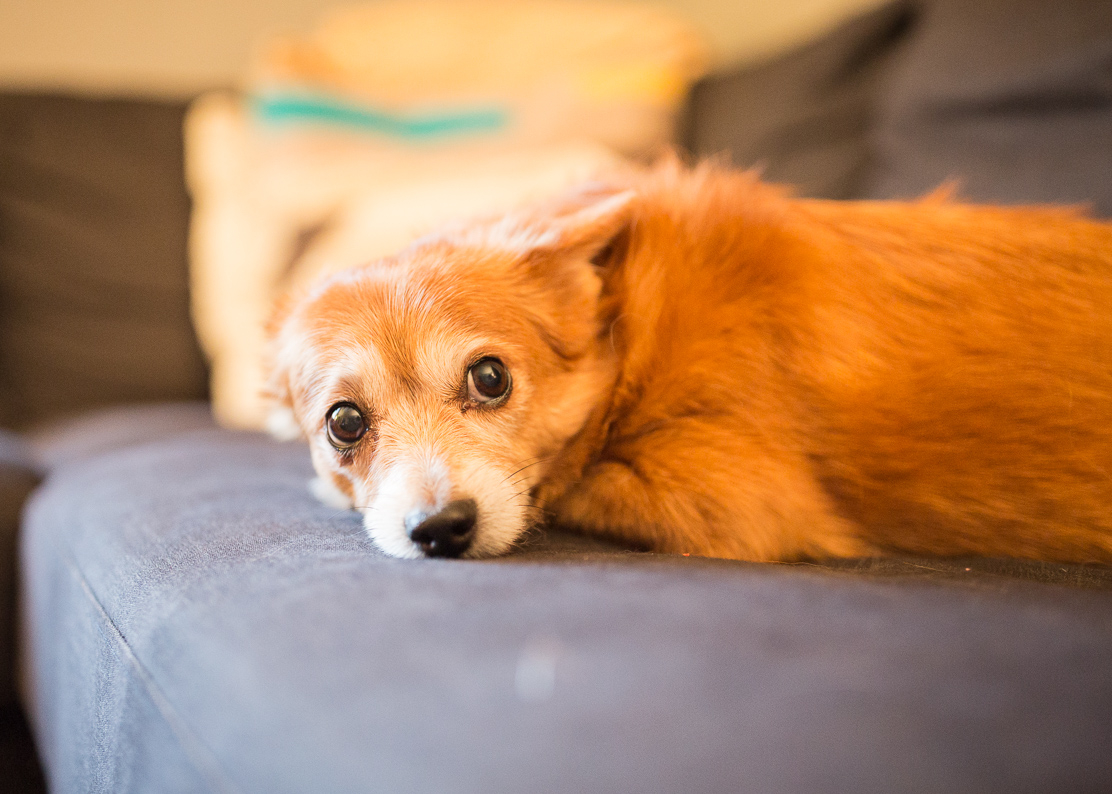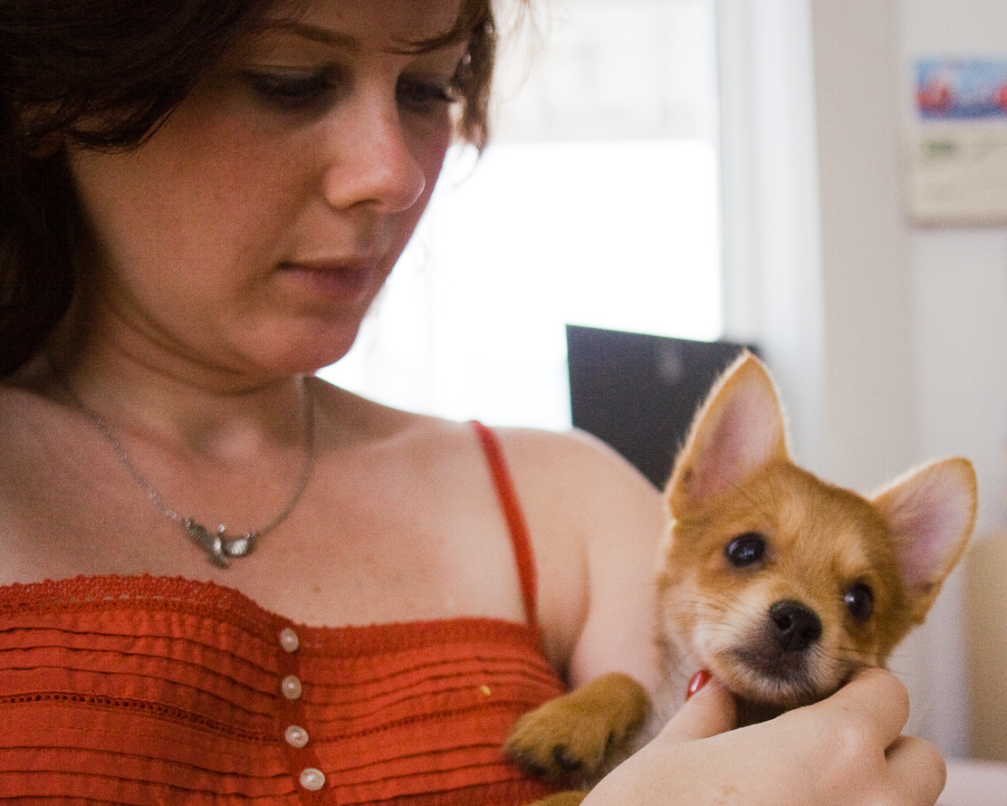 You are in the window surrounded by other puppies. A tottering orange ball of fuzz with little triangular ears, like a fox who lost its tail. Ink-black eyes and round button nose. My wife, pregnant and hormonal, is instantly in love with you. We go inside to play with the puppies, because why would you not want to play with cute puppies while on vacation? You curl up in my cupped hands, calm and sleepy.